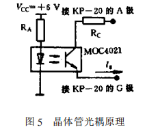 只需取下圖1所示的D1D2兩個二極管,然后接到MOC4021光電隔離器的二極管側,另外2個端點按圖5所示接到晶閘管的控制極G和陽極A上。RcRx的參數設計如下: