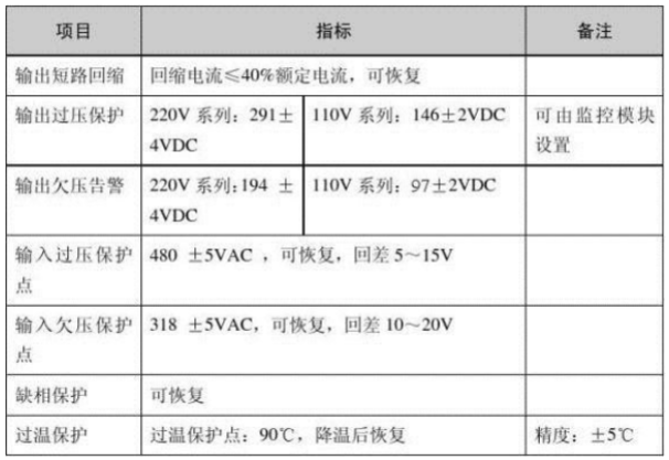 充電模塊前面板上的高亮度LED數碼管指示模塊的輸出電壓或電流,由顯示轉換開關進行切換。面板上的發光二極管分別指示模塊輸入電源正常(綠色、模塊保護(黃色、模塊故障(紅色。其中,模塊保護包括交流過、欠壓,過溫、缺相,輸出欠壓等;模塊故障包括模塊輸出過壓。